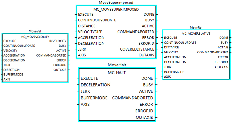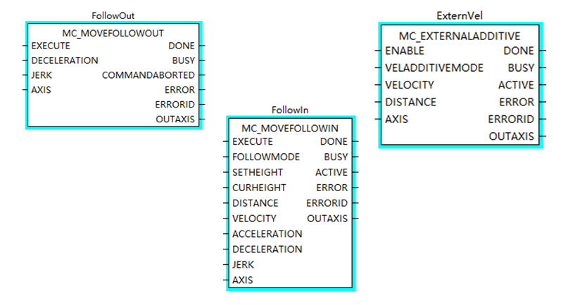 在(zai)标準功能(néng)塊之(zhi)外,集(ji)成(cheng)了(le)随動(dòng)控製(zhi)、外部(bu)速(su)度疊加(jia)運動(dòng)模塊,擴大(da)應用(yong)場(chang)景